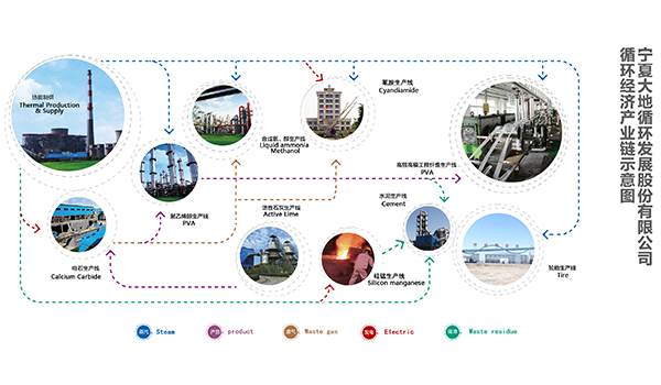 宁夏大地循环发展股份有限公司开发以大型密闭电石炉为中心的电石化工的整体循环经济产业链,使原料——产品——原料的产业链不断延伸,将资源“吃干榨净”。