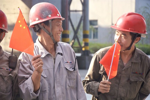 无论是维修工人、晒得黝黑的安环人员,还是机修达人,我们朝着国旗的方向,勇往直前,不断进取。